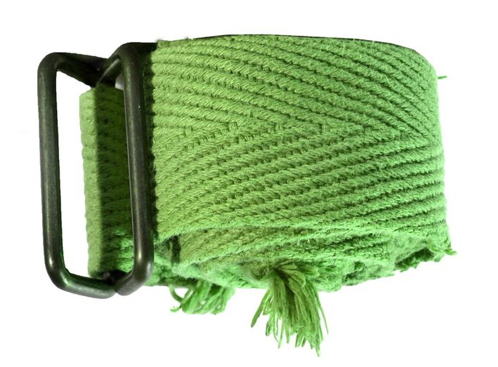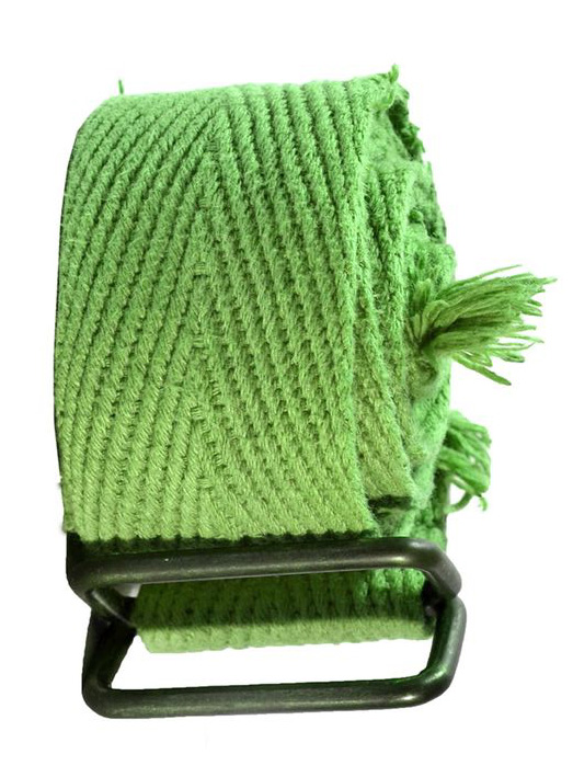 Стильный текстильный ремень, декорированный полоской и фирменным логотипом. Застежка на металлическую пряжку. Отличный вариант на каждый день.