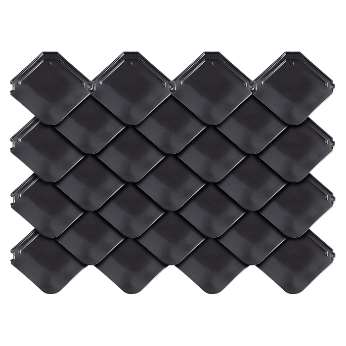 Ромбовидная черепица имеет непривычную форму, но именно благодаря ей поверхность крыши становится гладкой и не дает задерживаться влаге. Такую черепицу легко укладывать, она позволяет изменять форму крыши. Ромбовидная форма помогает выполнить интересные современные архитектурные акценты на кровле и фасаде.